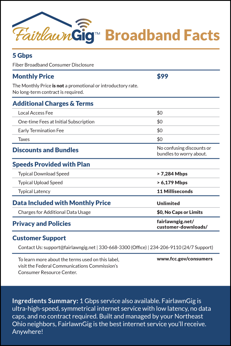 Currently, FairlawnGig is available only to Fairlawn, Ohio residents.